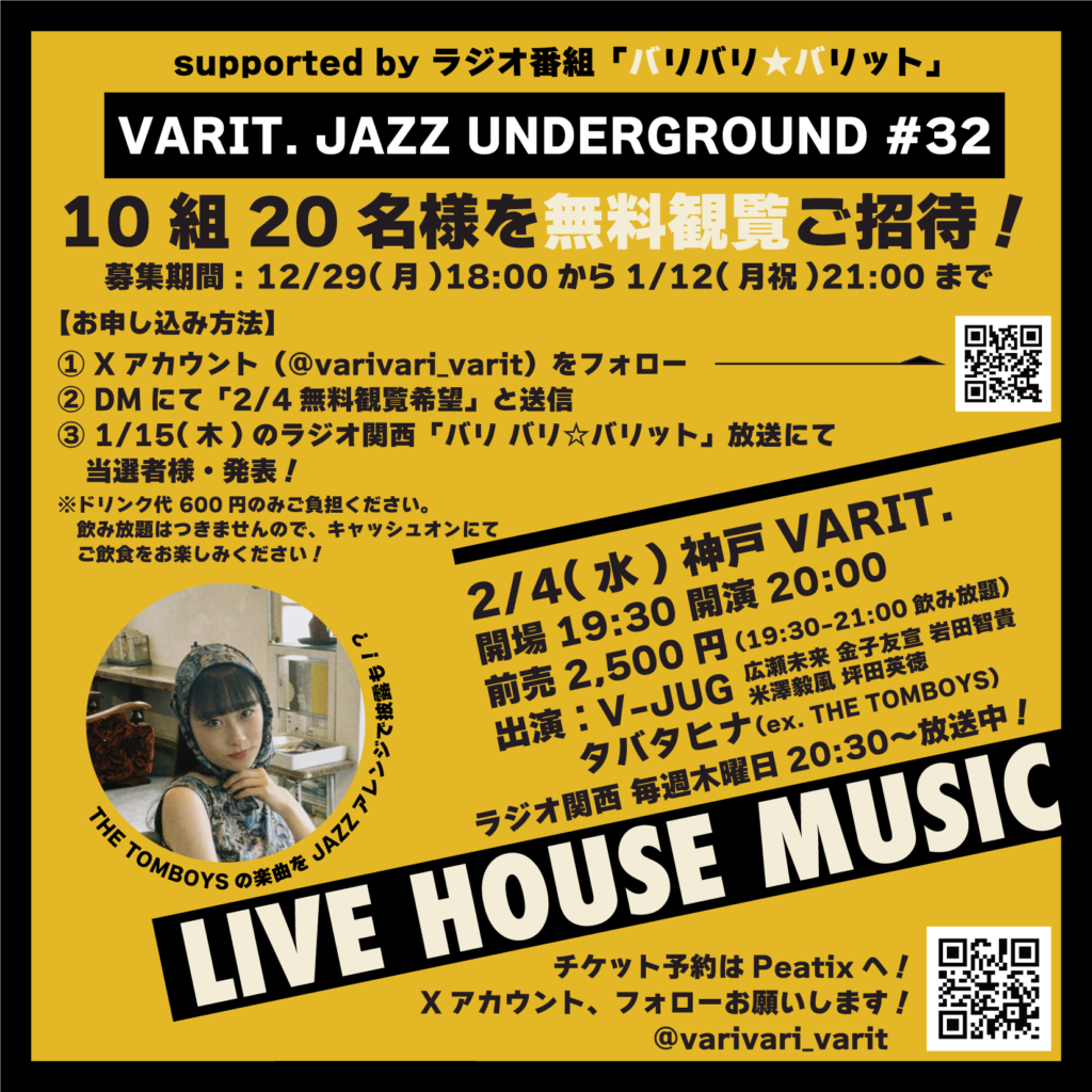 ■当日は開場時刻の12:00~神戸VARIT.にてチケットとリストバンド交換を行います。各会場へご入場の際はリストバンドをご提示いただき、ご入場くださいませ。